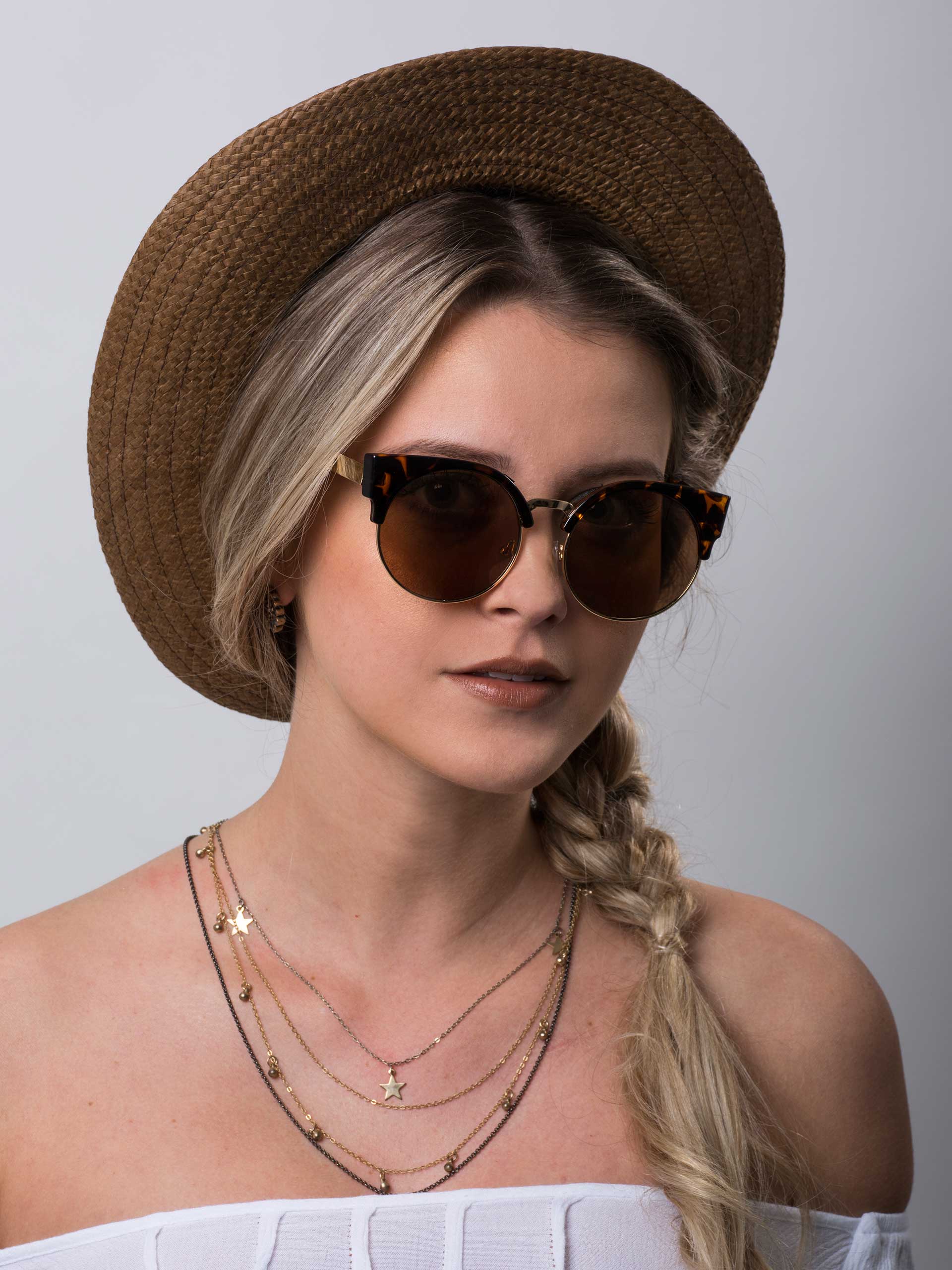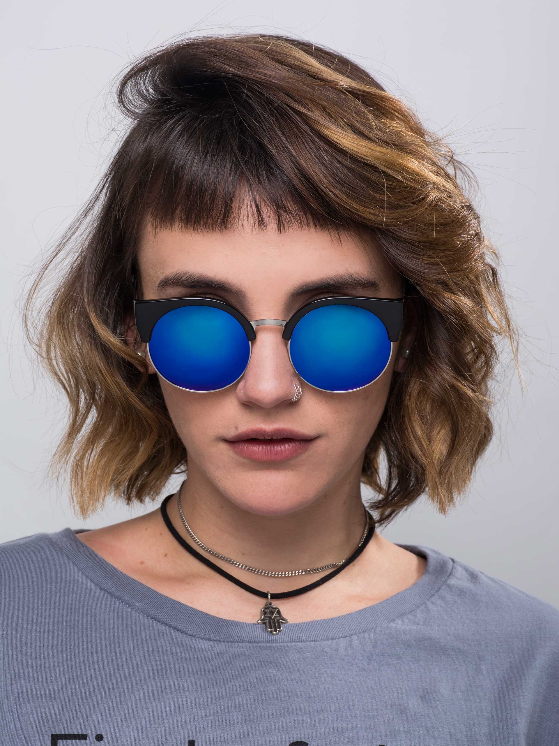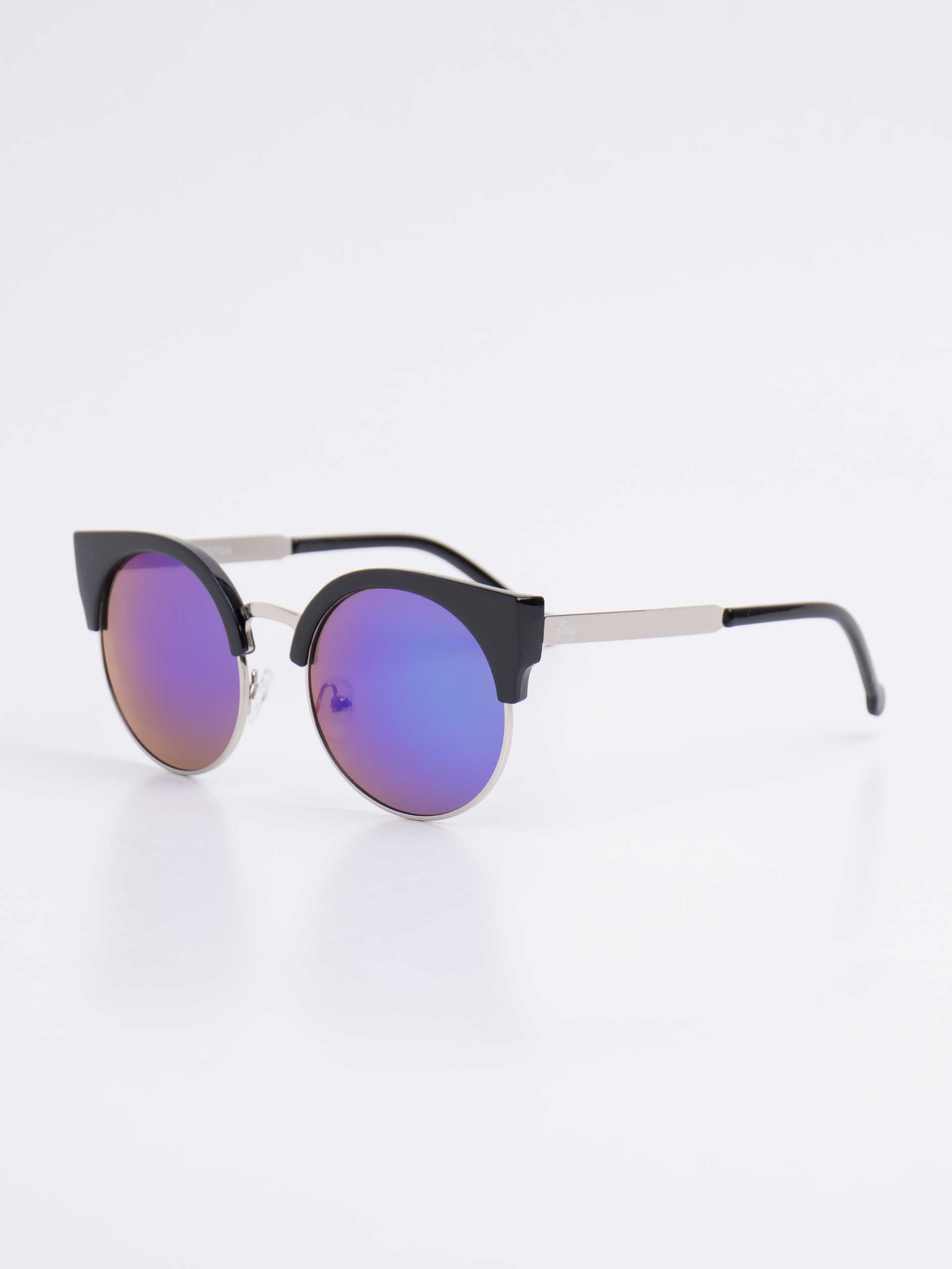 Óculos de Sol Gatinha Redondo Urbano Modelo Milo com Lentes de Sol Redondas com Proteção 400UV, Tamanho Grande, Armação de Metal e Detalhe Superior Gatinha de Plástico. Óculos de sol lindo de viver e usar todo dia! Modelo gatinha arredondado, cheio de detalhes e charme, pra arrasar corações!