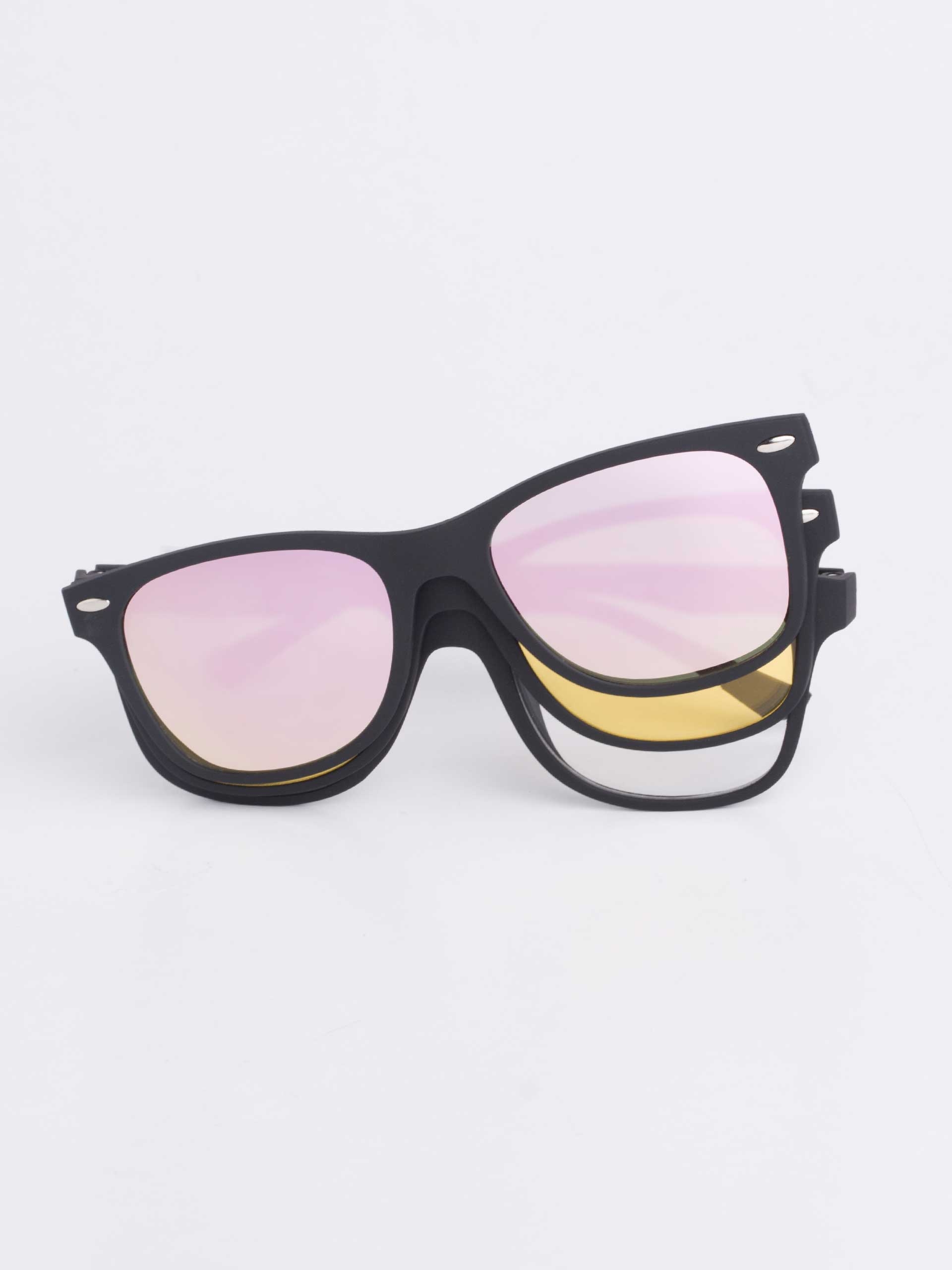 Óculos de Sol 3 em 1 Wayfarer Clássico Modelo Clipper com Lentes Incolores Quadradas, Lente Solar Espelhada Polarizada e Lente Solar Night Vision, Tamanho Médio e Armação em Plástico Emborrachado. Já pensou num oclito dois em um? Tenho certeza que sim, mas um oclito ULTRA em um? Sol, grau, espelhado e night vision, tudo num oclito só <3